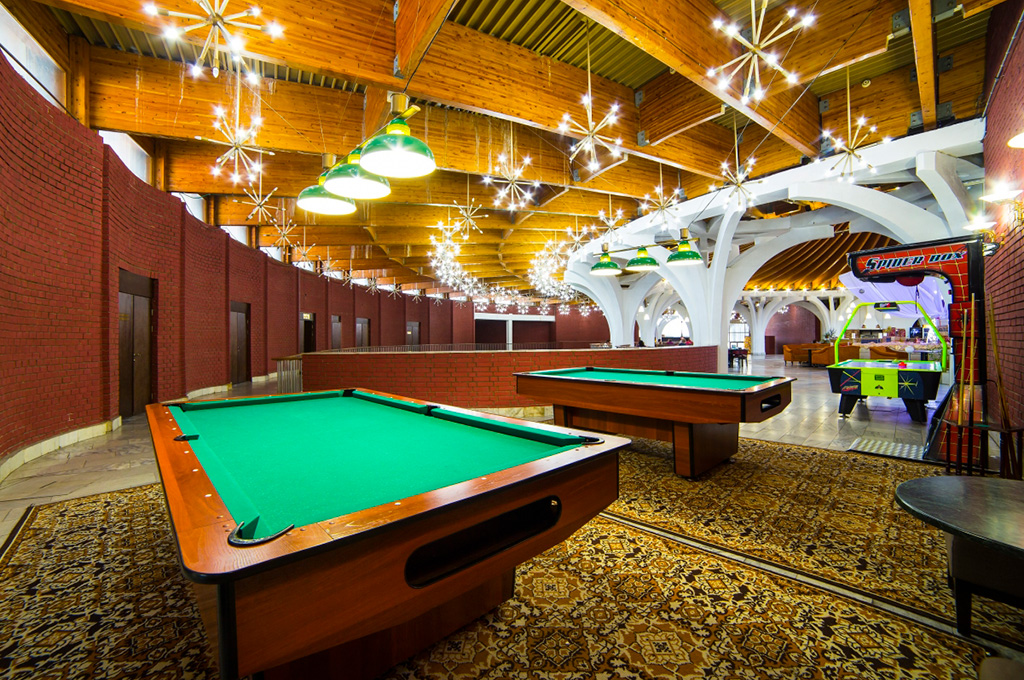 Гости отеля могут посещать бильярдный зал. Эта увлекательная игра дарит приятные эмоции, как игрокам, так и зрителям. Гости отеля могут не более 1 часа непрерывно играть, так прописано в системе «Все включено». Рядом с игровой зоной есть мягкие диваны для отдыха.